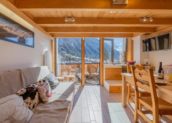 Residence Grand Roc - Ancolies 215 - Happy Rentals Chamonix de 44 m^2, situé dans le quartier "Argentière" à Chamonix, à moins de 7 minutes de marche de Pierre d'Argentiere, offre une vue sur les montagnes.